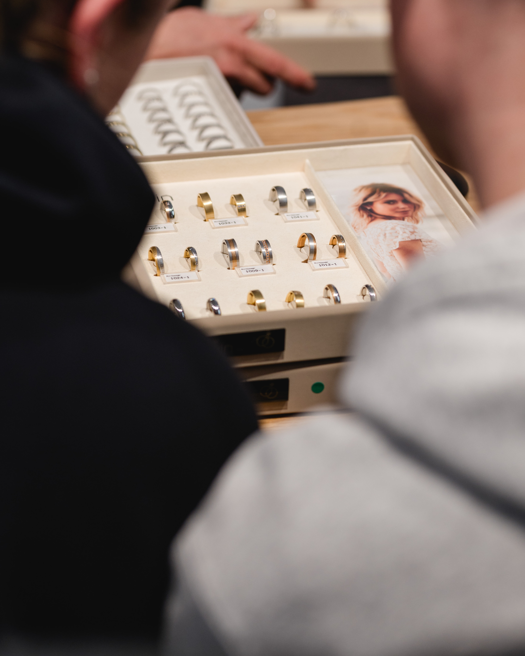Aus diesem Grund haben wir in unserem Trauringstudio verschiedene Musterringe zum An- und Ausprobieren.
